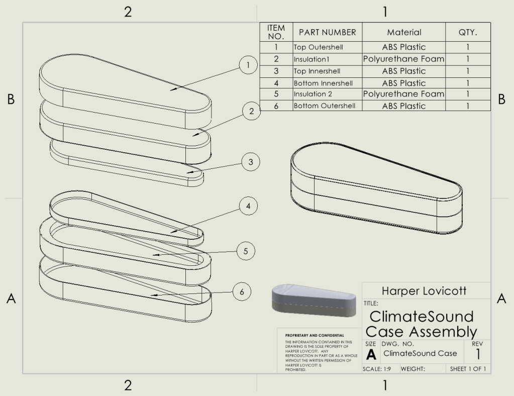 Below are the SOLIDWORKS CAD designs of my final case including a assembly, exploded view, and drawing.