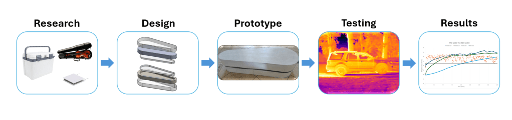After collecting the data from my tests, I analyzed the results, which revealed that the thermally protective case extended the time a case could be safely left in a car by 400% compared to a standard violin case. This demonstrated that my design effectively slows the rate of heat transfer from the external environment into the case’s interior, significantly enhancing its thermal protection.